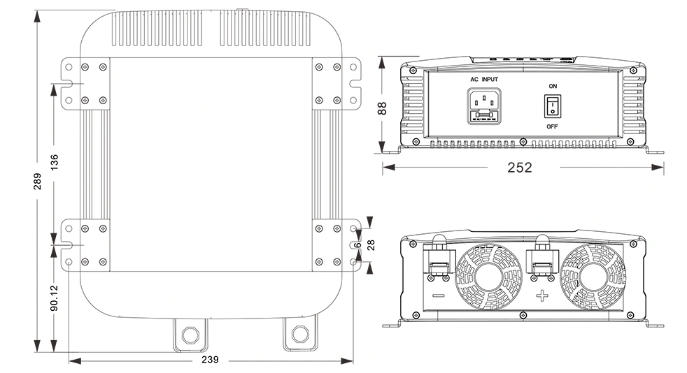Механични чертежи: (289 × 252 × 88 мм)