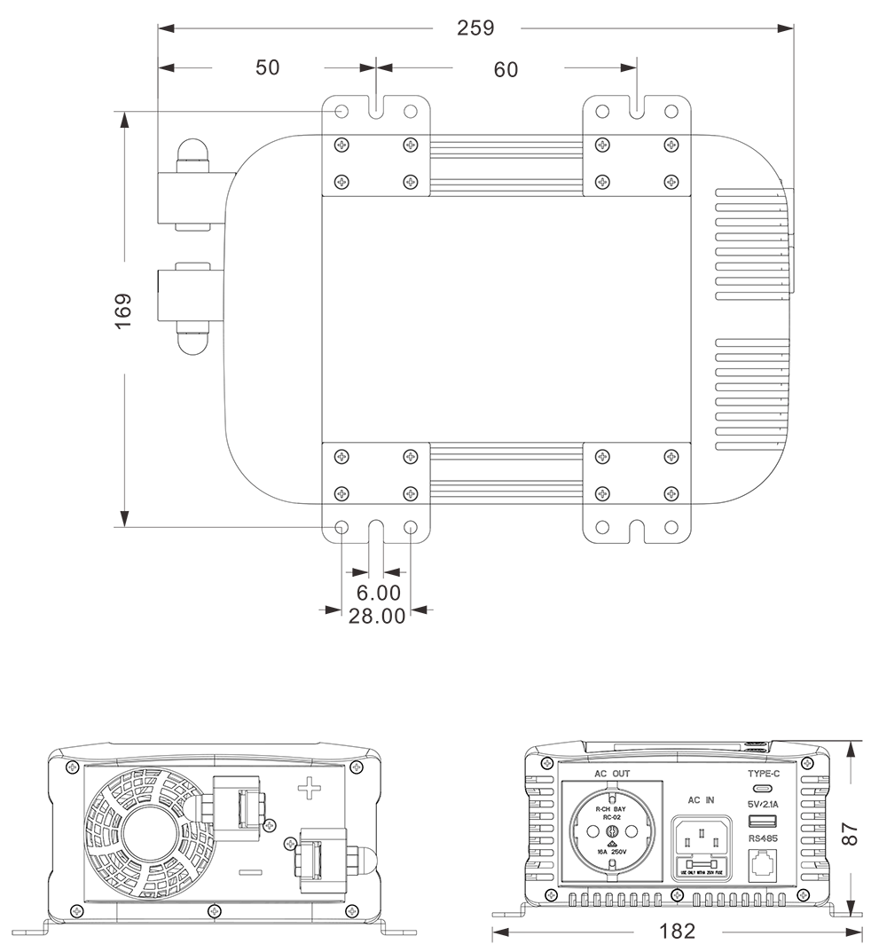 Механични чертежи: (259x182x87mm)